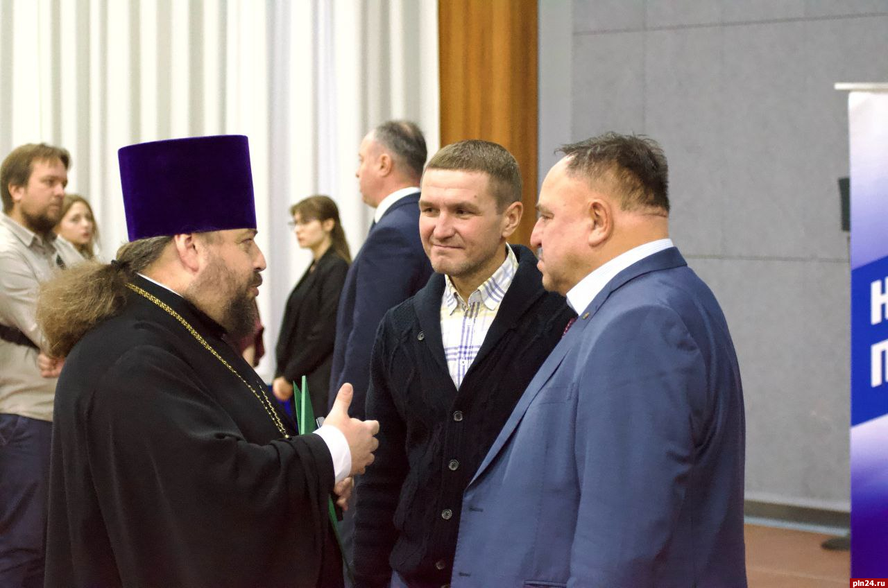 По словам секретаря регионального отделения партии, депутата Госдумы Александра Козловского, впервые к работе партийного отделения присоединились представители Псковской митрополии Русской православной церкви. Обсуждали совместные проекты, направленные на укрепление традиционных ценностей, уважение к семье, культуре и духовности, среди них - «Дружина Довмонта» (конец цитаты).