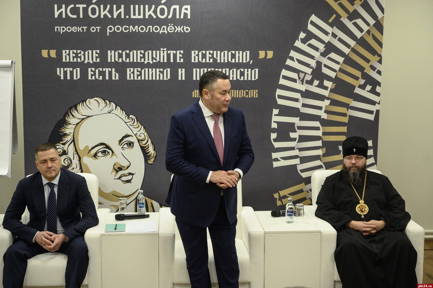 Как следует из официальной информации от органов власти, приезжал полпред «в целях мониторинга исполнения поручений президента», и в компании губернатора Михаила Ведерникова посетил объекты промышленности и социальной сферы. Помимо прочего, побывал на сессии областного Собрания (я уже и не помню, когда у нас такое-то было, чтобы полпред на сессию приехал) и в Псково-Печерском монастыре, где встретился с псковским митрополитом Матфеем — можно сказать, одной из центральных персон минувшей недели.