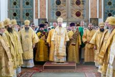 По отпусте божественной литургии архипастыри и священнослужители совершили славление святителю Тихону.