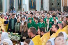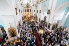 Божественную литургию в соборе возглавил митрополит Минский и Заславский Вениамин, Патриарший Экзарх всея Беларуси. Его высокопреосвященству сослужили: митрополит Смоленский и Дорогобужский Исидор; митрополит Псковский и Порховский Матфей; архиепископ Витебский и Оршанский Димитрий; архиепископ Гомельский и Жлобинский Стефан; архиепископ Гродненский и Волковысский Антоний; епископ Бобруйский и Быховский Серафим; епископ Туровский и Мозырский Леонид; епископ Молодечненский и Столбцовский Павел; епископ Лидский и Сморгонский Порфирий; епископ Полоцкий и Глубокский Игнатий; епископ Борисовский и Марьиногорский Амвросий; викарий Патриаршего Экзарха епископ Несвижский Авксентий и духовенство Белорусской православной церкви. Диаконский чин возглавил протодиакон Владимир Назаров.
