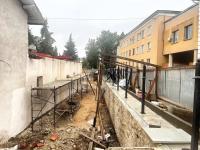 В настоящий момент продолжается облицовка декоративным природным камнем опорной стены. Она построена вокруг церкви и предотвращает обрушение грунта.