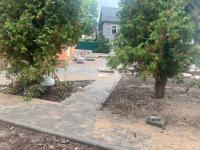 В ходе работы выполнена планировка, в соответствии с проектом. Уложен поребрик и большая часть декоративной плитки. Предстоит работа по устройству газонов и высадке декоративных растений. Для завершающих этапов реставрации храма привезены отделочные материалы. Мраморная плитка для интерьеров. Элементы для воссоздания одного из гранитных крылец.