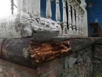 ️На фотофиксации — сегодняшнее состояние церкви и состояние памятника на период 2022 года: угол здания, другие разрушения исторического сруба.
