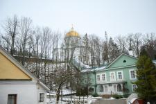 Его Высокопреосвященству сослужили: благочинный Псково-Печерской обители иеромонах Прохор (Андрейчук) с братией монастыря в священном сане.