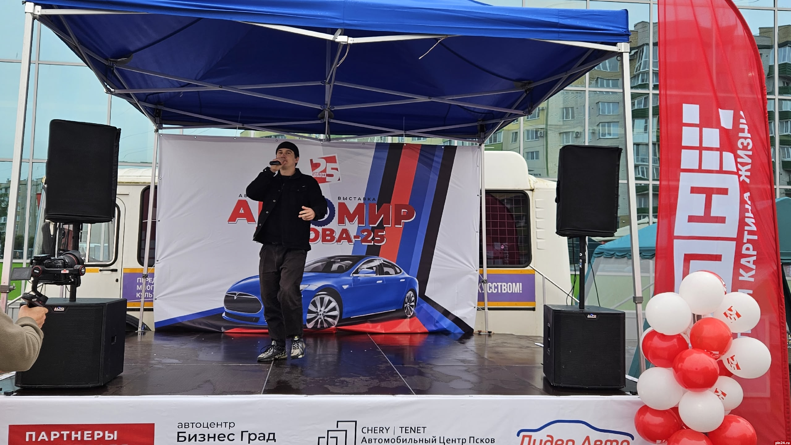 Псковские рэп-исполнители представили свои авторские треки на автофестивале-выставке «Автомир Пскова» в честь 25-летия ПЛН на парковке торгово-развлекательного комплекса «Акваполис» 20 сентября, передаёт корреспондент Псковской Ленты Новостей.