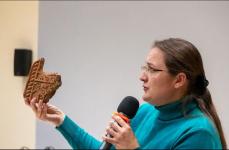 Археолог Ирина Аракчеева, кроме того, рассказала участникам Кутузовских чтений о находках в раскопе на месте, где будет установлен памятник князю Довмонту, и даже дала потрогать некоторые из них. А тех молодых людей, кто угадал назначение этих вещей и понял, каким современным устройствам они соответствуют, наградила книгами про археологию.