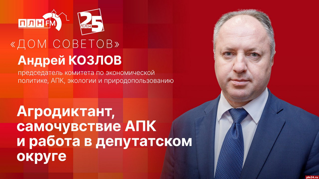 Слушайте в прямом эфире радио «ПЛН FM» (102.6 FM) новый выпуск программы «Дом Советов». Гость студии - председатель комитета по экономической политике, АПК, экологии и природопользованию Псковского областного Собрания Андрей Козлов.