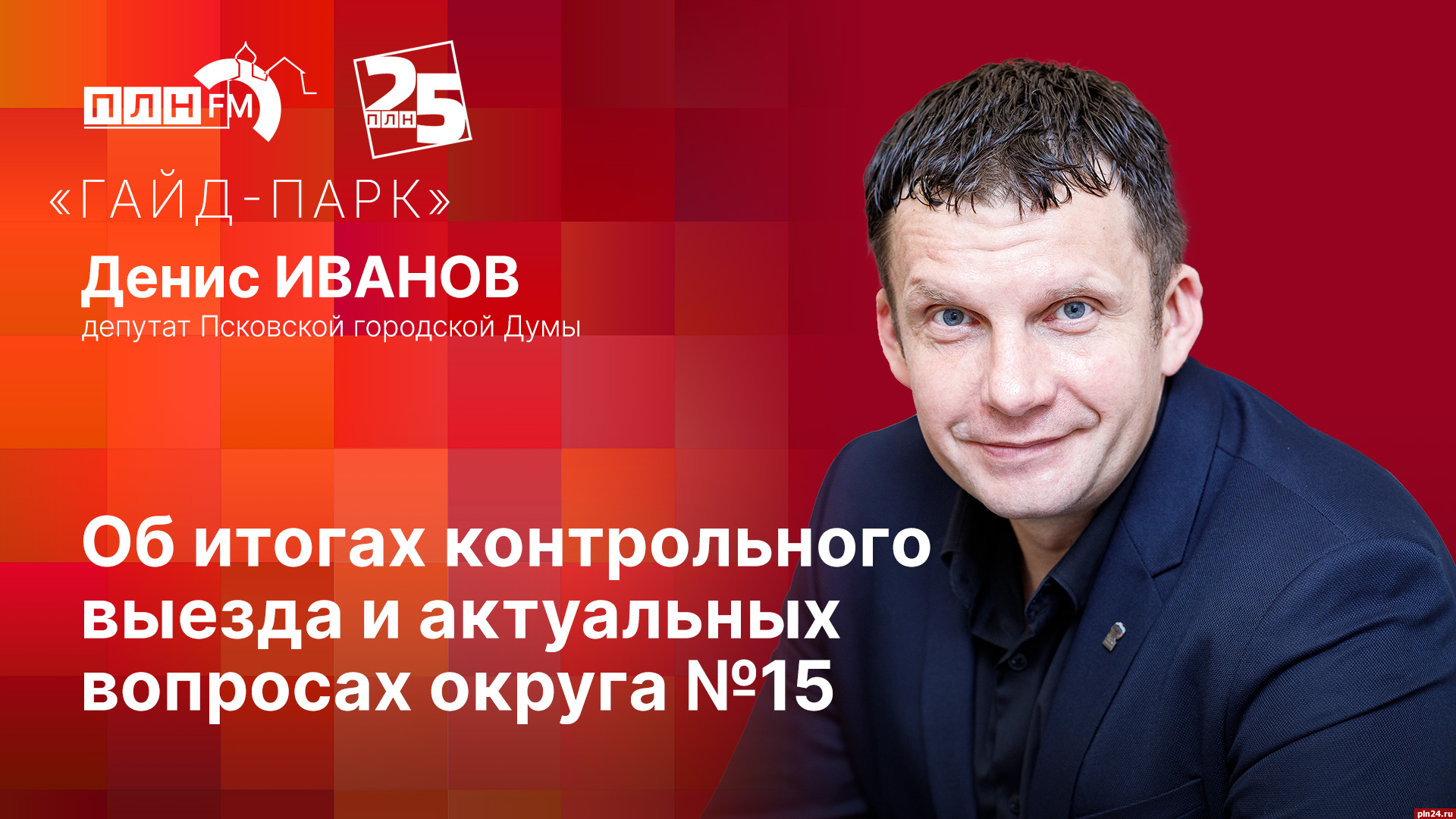 Слушайте в эфире радио «ПЛН FM» (102.6 FM) новый выпуск программы «Гайд-парк». Гость студии - депутат Псковской городской Думы по округу №15 Денис Иванов. Ведущий Константин Калиниченко обсудит с ним основные итоги недавнего контрольного выезда главы Пскова Бориса Елкина в 15-й округ, а также затронет актуальные вопросы, с которыми к депутату обращаются избиратели.