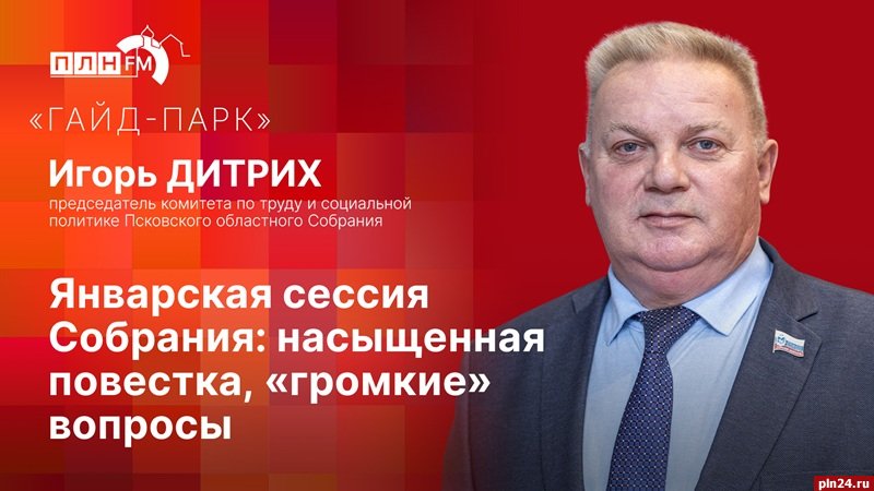 Слушайте сегодня, 4 февраля, в эфире радио ПЛН FM (102.6 FM) новый выпуск программы «Гайд-парк». В гостях у ведущей Любови Кузнецовой - председатель комитета по труду и социальной политике Псковского областного Собрания Игорь Дитрих, а речь пойдет об итогах состоявшейся 29 января сессии регионального парламента.