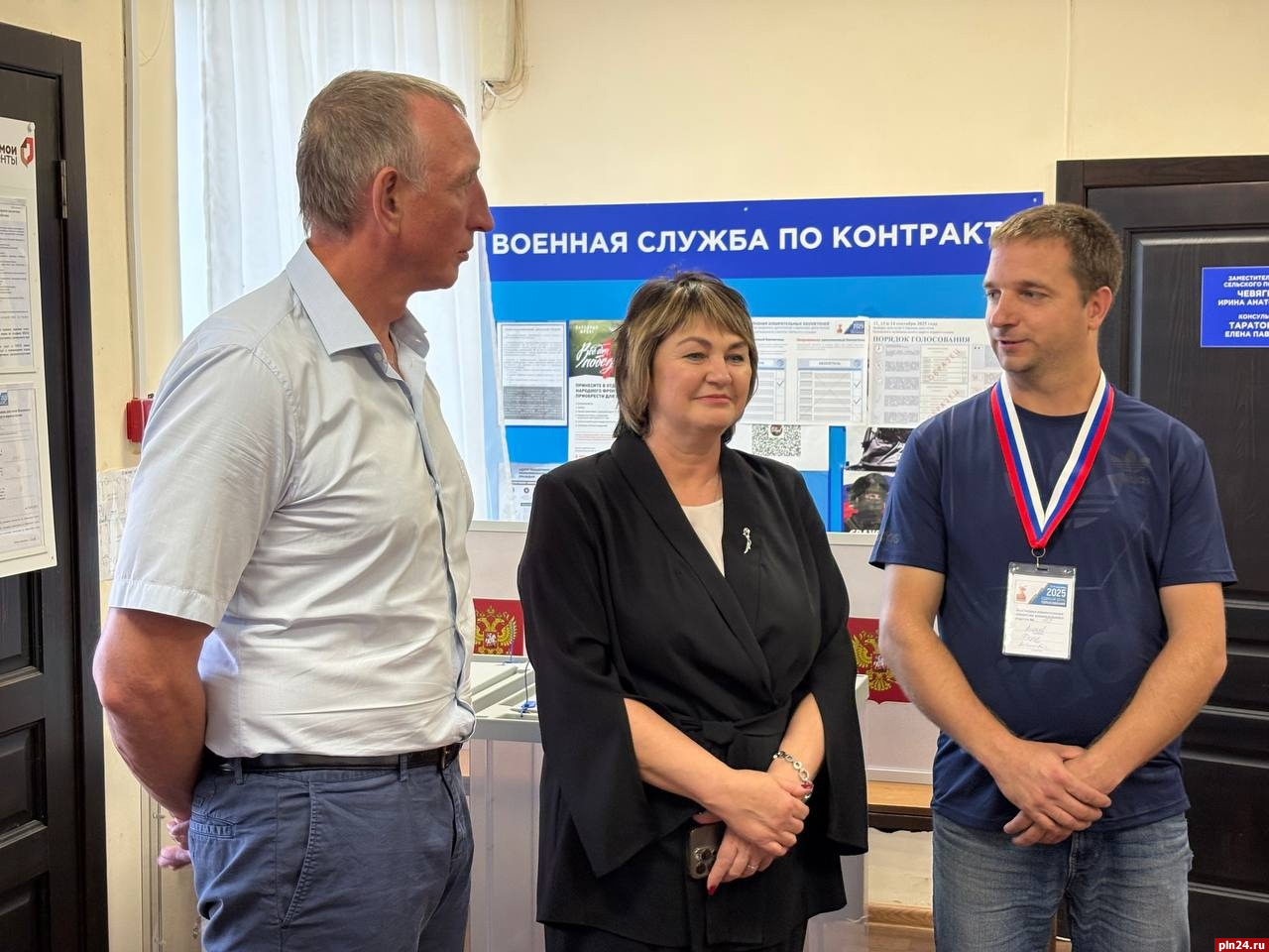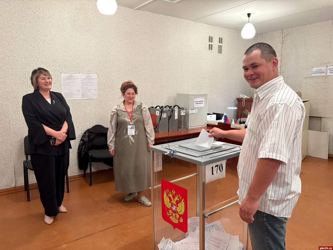 В Черёхе организацию процесса голосования глава Псковского района проконтролировала вместе с депутатом Государственной Думы Александром Козловским. На участке в это время голосовал ветеран СВО, кавалер ордена Мужества и медали «За Отвагу» Максим Андреев.