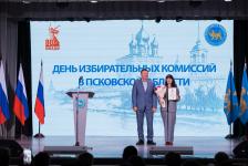 Вице-губернатор Ольга Тимофеева передала слова благодарности главы региона Михаила Ведерникова всем, кто в разные годы посвящал своё время и силы организации и проведению выборов. «Опираясь на опыт прошлых поколений, избирательная система Псковской области сформировала собственные традиции и освоила многие эффективные инструменты и технологии, которые используются сегодня в нашей стране», - зачитала она приветственный адрес губернатора и вручила членам избиркомов региональные поощрения за проведение избирательных кампаний и общественно значимых мероприятий на территории области.