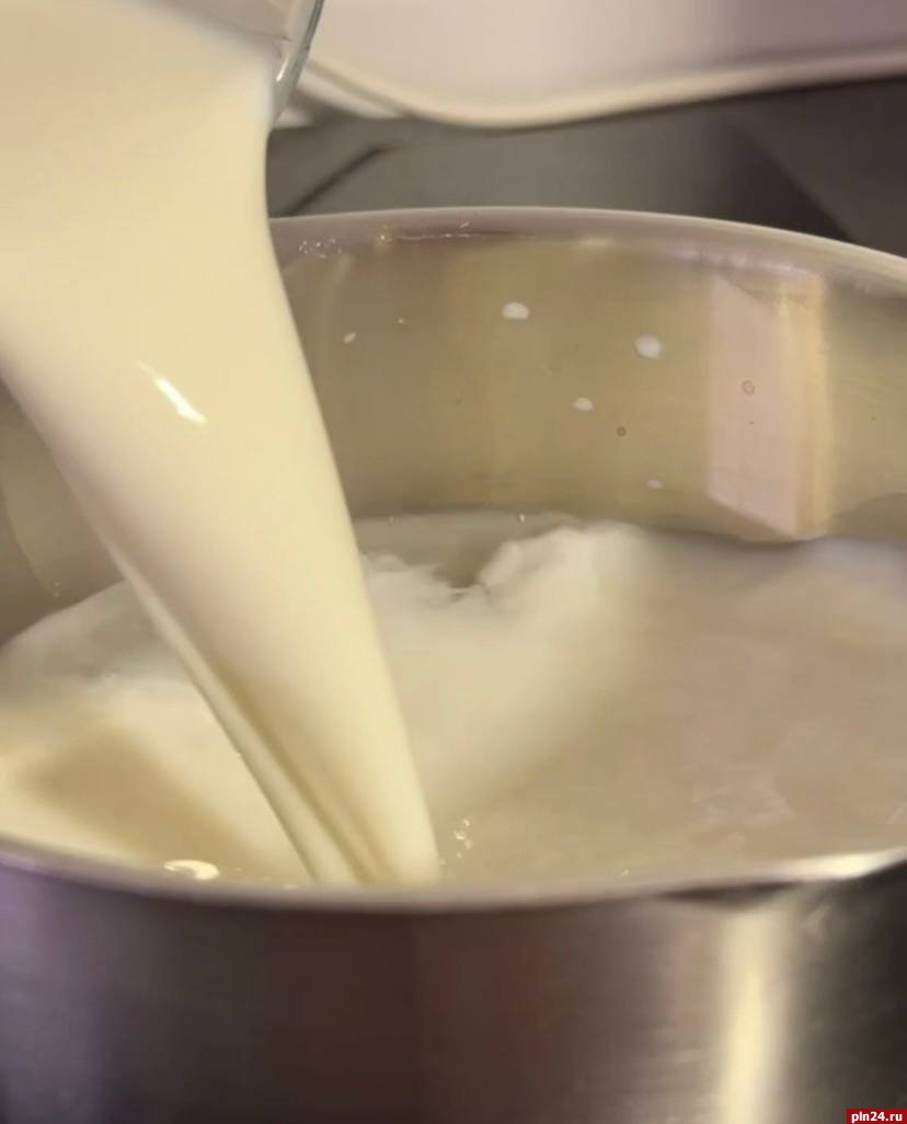 Когда от молока начнет подниматься пар, всыпьте соль, сахар и перемешайте, пока кристаллики не растают.